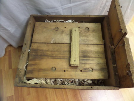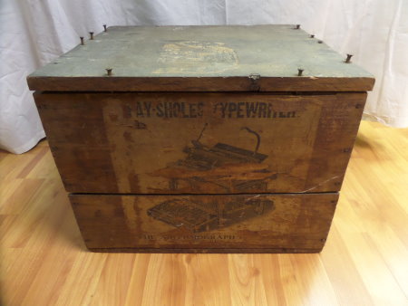 The Fay-Sholes typewriter shipping crate with a graphic label applied on two sides. Inside are what I believe are all the original shipping materials. A rare example of a virtual time capsule showing how this typewriter left the factory on its trip to its original owner. I’ve had this crate in my possession for thirty years and have never seen another. A rear piece of typewriter memorabilia.