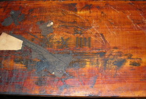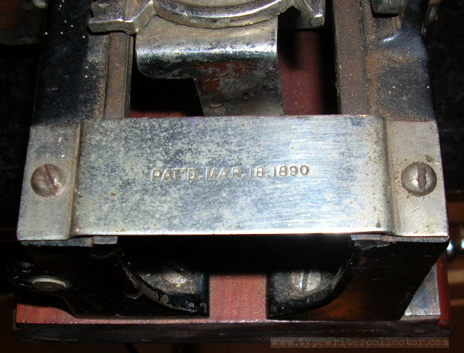 Another oddity built into this little beauty is the feed roller shaft with knurled knob that was used to advance the paper vertically. Measuring six inches long, it protrudes out from the left side frame as the paper carrier travels across the writing line towards the right margin. The extended length of the shaft provides access to the knob regardless of where the carrier is along the writing line. Each Alexis had its serial number crudely scratches into the wood base (see image below).
